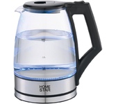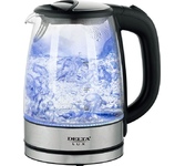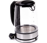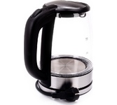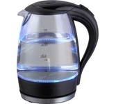 Объем 1,8 л Корпус из термостойкого боросиликатного стекла Шкала уровня воды Светодиодная внутренняя подсветка Закрытый нагревательный элемент из нержавеющей стали Поворот на подставке 360° Защита от работы без воды Автоматический выключатель Мощность 1850-2200 Вт Длина шнура 72 см
