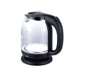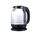 Объем 2 л, Номинальная потребляемая мощность 2200 Вт, Закрытый нагревательный элемент из нержавеющей стали, Корпус из высококачественного жаропрочного стекла, Вращение корпуса на 360°, Шкала уровня воды, Внутренняя LED-подсветка, Противоскользящие ножки, Отсек для хранения электрошнура, Цвет: черный, Автоматическое отключение при закипании, Блокировка включения без воды.