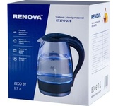 1,7 л. Термостойкое стекло. Мощность 2200 Вт. Закрытый нагревательный элемент, Защита от включения без воды, Защита от перегрева, Фильтр от накипи Габариты упаковки 265 * 180 * 220. Вес нетто/брутто1.2 / 1.34 кг