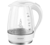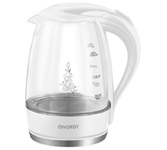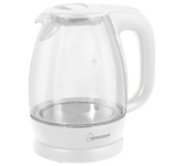 Объем чайника (Л): 1,5. Мощность (Вт): 1650-2000. Отключение при отсутствии воды. База с поворотным контактом. Шкала уровня воды: Да. Съемный фильтр. Цвет корпуса: белый. Материал корпуса: Закаленное стекло. LED-подсветка