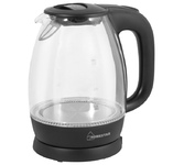 Объем чайника (Л): 1,5. Мощность (Вт): 1650-2000. Отключение при отсутствии воды. База с поворотным контактом. Шкала уровня воды: Да. Съемный фильтр. Цвет корпуса: черный. Материал корпуса: Закаленное стекло. LED-подсветка