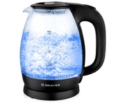 1026BR Чайник электрический BRAYER, 2200 Вт, 1,8 л, высокопроч.стекл, подсвет, автоот, моющ.фильтр Максимальная мощность 2200 Вт Максимальный объём 1,8 л Корпус из высокопрочного термостойкого стекла Внутренняя подсветка Автоотключение при закипании воды Отключение при отсутствии воды Моющийся фильтр Противоскользящее основание Электропитание 220-240 В, ~50-60 Гц