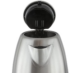 Чайник электрический, объем 1,7л, максимальная мощность 2200 Вт, индикатор уровня воды, индикатор включения, фильтр от накипи, автоматическое открывание крышки, защита от включения без воды, автоматическое отключение при закипании, вращение на 360 градусов, хранение электрошнура в подставке, корпус из нержавеющей стали