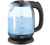 Объем 1,7 литра Корпус из термостойкого стекла Иллюминация Специальная ручка от скольжения Поворот на подставке на 360° Быстрое закипание Фильтр от накипи Закрытый нагревательный элемент Автоматическое отключение Защита от перегрева без воды Электрошнур в цокольной подставке Номинальная мощность 2000 Вт 230 B ~ 50 Гц