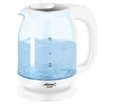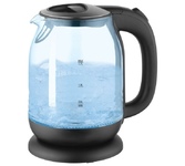 Электрический чайник с подсветкой. Объём 1,8 л. Мощность 1850 Вт. Рабочее напряжение 220 В. Частота сети питания 50 Гц. Класс защиты: I. LED (Light Emitted Diode) индикатор с синей подсветкой. Корпус из термостойкого стекла и первичного пластика. Автоматический и ручной выключатель. Поворот на подставке 360°. Отсек для хранения шнура. Дисковый нагревательный элемент из высококачественной нержавеющей стали Размер прибора 220х160х245 мм (ШхГхВ), Размер индив. коробки: 230х160х230 мм (ШхГхВ), Размеры транс. коробки 472х330х472 мм (ШхГхВ) Кол-во в транс. упаковке 8 шт. Вес брутто: 1,2кг