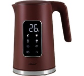 Композитный двухслойный корпус Внутренняя колба выполнена из пищевой нержавеющей стали 18/10 Цифровой контроль температуры 4 быстрых температурных режима Ручная настройка температуры Большой, яркий LED дисплей Удобное управление, эргономичный дизайн Функция поддержания температуры Высокий уровень термоизоляции Объем 1,7 литра Поворот на подставке на 360° Быстрое закипание Закрытый нагревательный элемент Автоматическое отключение Защита от перегрева без воды Электрошнур в цокольной подставке Номинальная мощность 1850-2200 Вт 220-240В~ 50/60Гц