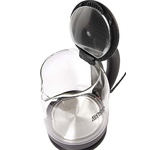 Объем 1.8л, Мощность 1500Вт, Автовыключение при закипании, Защита от включения без воды, Защита от перегрева, Поворачивающийся корпус (360°), Дисковый нагревательный элемент, Индикация включения, Светодиодная подсветка, Стеклянный корпус, Ручка и крышка ABS-пластик, Рабочее напряжение 220В / 50Гц.