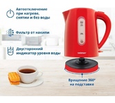 Мощность 1850-2200 Вт Объем 1,7 л Двойной корпус (нержавеющая сталь внутри, пластик снаружи) Закрытый нагревательный элемент из нержавеющей стали Поворот на подставке 360° Защита от работы без воды Автоматический выключатель Световой индикатор работы Длина шнура 70 см Контроллер STRIX (Англия) Гарантия 2 года