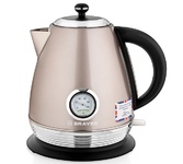 Объем 1,7 литра 7 режимов нагрева и поддержания температуры – 40/50/60/70/80/90/100°С Корпус из термостойкого стекла Цифровой контроллер температуры Шкала уровня воды Поворот на подставке на 360° Быстрое закипание Фильтр от накипи Закрытый нагревательный элемент Автоматическое отключение Защита от перегрева без воды Электрошнур в цокольной подставке, 66см Мощность 1850-2200 Вт 220-240 B ~ 50/60 Гц