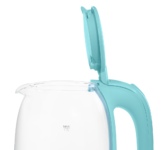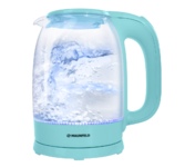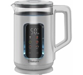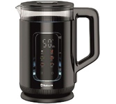 1,5 л, 1500-1800 Вт, 2-слойн.корпус (стекло + пластик). LED дисплей, 6 темп. режимов (40-50-80-90-95-100 °С), сенсор.управление, разноцвет.подсветка, поддержание темп-ры в течение 12 ч., функция памяти, съемная крышка, шнур 0,75 м, упаковка для МП