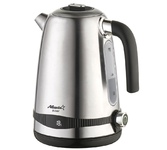 Максимальная мощность 2150 Вт. Максимальный объём 1,7 л. Корпус из нержавеющей стали. Английский контроллер STRIX. Встроенный термометр. Встроенный фильтр от накипи. Индикатор уровня воды. Автоотключение при закипании воды. Отключение при отсутствии воды. Поворачивающийся на 360° корпус. Открытие крышки путём нажатия на кнопку. Электропитание 220-240 В., ~50-60 Гц.