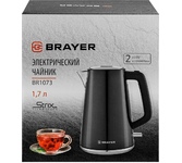 Электрочайник Brayer BR1037 выполнен в корпусе из металла и пластика с технологией Cool Touch, благодаря которой он остается прохладным даже при закипании воды. Модель управляется с помощью сенсорной панели, которая позволяет выставить температуру нагрева воды от 40°С до 110°С и включить режим подогрева на протяжении 2 часов. Чайник вмещает до 1,7 л воды, которая нагревается закрытым ТЭНом мощностью 2,2 кВт.
