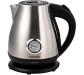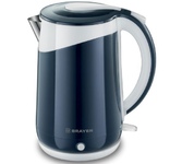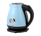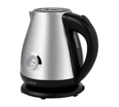 Корпус из нержавеющей стали с пластиковым покрытием Cool Touch, которое остается холодным при нагревании Максимальная мощность 2200 Вт Максимальный объём 1,5 л Скрытый нагревательный элемент Автоотключение при закипании воды Отключение при отсутствии воды Поворачивающийся на 360° корпус Открытие крышки нажатием на кнопку Электропитание 220-240 В, ~ 50/60 Гц Поддержание температуры воды