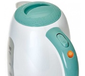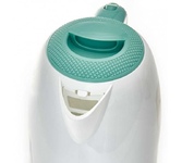 Объем 1,7 л. Номинальная потребляемая мощность 2200 Вт. Корпус из высококачественного жаропрочного пластика. Закрытый нагревательный элемент из нержавеющей стали. Вращение корпуса на 360°. Цвет: белый с мятным. Двухсторонняя шкала уровня воды. Световой индикатор работы. Съемный фильтр. Отсек для хранения шнура. Противоскользящие ножки. Автоматическое отключение при закипании. Блокировка включения без воды.