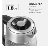 Чайник Maunfeld MGK1710GS — это современное устройство, которое сочетает в себе элегантность дизайна и функциональность. Произведенный в Китае, прибор обладает гарантией в 12 месяцев, что подтверждает его надежность и долговечность. Он имеет удобные размеры: высота — 22 см, ширина — 22 см, глубина — 14.6 см, что позволяет удобно разместить его на любой кухне. Объем техники составляет 1.7 литра, что достаточно для приготовления большого количества напитка. Дизайн выполнен в стиле «Модерн», что делает прибор актуальным для любого интерьера. Корпус устройства изготовлен из боросиликатного стекла, что придает ему эстетический вид и обеспечивает долговечность. Цвет нержавеющей стали и стекла идеально сочетаются, создавая элегантный и современный образ. Модель оснащена светодиодной кольцевой подсветкой, что делает ее использование не только удобным, но и визуально привлекательным. Вращение на 360 градусов обеспечивает удобство использования, а закрытая спираль нагревательного элемента гарантир