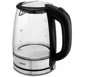 Чайник электрический. Объем: 1,7 литра, Материал корпуса: стекло/металл, Мощность: 2200 Вт, Индикатор уровня воды, Индикация включения, Цвет: Серебро/черный.
