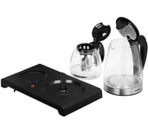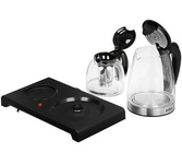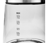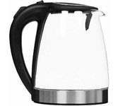 Мощность 2200Вт. Объем 1,7л. Материал корпуса стекло. Скрытый нагревательный элемент. Материал фильтра нейлон. Подсветка. блокировка включения без воды. Индикация включения.