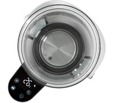Надежный и мощный чайник: Благодаря мощности 2200 Вт, чайник вскипятит воду за считанные минуты. Объем чайника составляет 1,7 л. Управление на корпусе: Управление чайником осуществляется с помощью удобной сенсорной панели, расположенной на корпусе. Вы можете выбрать нужную Вам температуру: 40° – 100° С, для заваривания различных сортов чая. Чайник будет поддерживать заданную температуру в течение 2-х часов. Безопасность: Корпус выполнен из нержавеющей стали с пластиковым покрытием Cool Touch, которое остается холодным при нагревании. А при отсутствии воды и при закипании чайник отключится самостоятельно. Чистая вода: В носик чайника встроен фильтр для защиты от накипи. Наглядность: Контрастные отметки литража расположены внутри корпуса. Основные характеристики: Тип: чайник электрический Тип управления: сенсорное Максимальная мощность: 2200 Вт Электропитание: 220-240 В, ~ 50-60 Гц Объём: 1,7 л Функции кипячения и подогрева воды для разных сортов чая: 40-100 °С Подогрев воды: да Поддержание заданной температуры