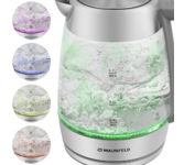 Электрический чайник MAUNFELD MGK-626BK быстро вскипятит или подогреет 1.7 литра воды. Металлический корпус и светодиодная кольцевая подсветка вокруг нагревательного элемента, которая освещает полностью во время нагревания или кипячения воды, делает устройство стильным на любой кухне. Дополнительная индикация уровня воды, блокировка крышки, а также съемный фильтр повысят удобство использования. Его можно поворачивать на 360 градусов в любую сторону вокруг своей оси. Закрытый нагревательный элемент не контактирует с водой и не подвержен коррозии. Ключевые преимущества: Индикация уровня воды Емкость 1.7 л. Металлический корпус