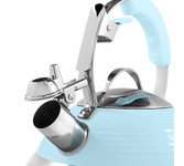 Maunfeld MRK-119BL — это чайник со свистком, пригодный для нагрева на всех типах варочных поверхностей. Корпус выполнен из металла (нержавеющей стали и алюминия), свисток — из сплава цинка. Ручка также металлическая, с накладкой из термостойкого пластика. Модель относится к коллекции «Retro». Ключевые преимущества: Ретро-дизайн Совместим с любыми типами варочных поверхностей Объём 3 литра