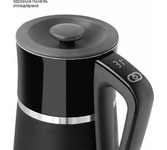 Объём: 1,5 л Мощность: 1500-1700 Вт Двойные стенки: комбинация термостойкого пластика и металла Длительное сохранение температуры воды Безопасность прикосновений к корпусу Быстрый нагрев и низкое энергопотребление Объём: 1,5 л Мощность: 1500-1700 Вт Двойные стенки: комбинация термостойкого пластика и металла Длительное сохранение температуры воды Безопасность прикосновений к корпусу Быстрый нагрев и низкое энергопотребление Скрытый дисковый нагревательный элемент Вращение на 360? Внутренний индикатор уровня воды 5 режимаов нагрева (45°C, 55°C, 70°C, 85°C, 100°C) Световая индикация выбранного режима Поддержание температуры Защита от перегрева и включения без воды Сенсорное управление на корпусе Время закипания: 3-5 мин Автоотключение при закипании Отсек для хранения шнура Нагревательный элемент: скрытый дисковый из нержавеющей стали
