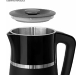 Мощность 2200Вт. Объем 1,7л. Материал корпуса сталь. Тип нагревательного элемента скрытый. Шкала уровня воды. Поворачивающийся на 360° корпус. Блокировка включения без воды. Индикация включения. Фильтр.