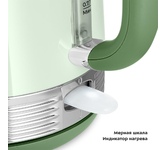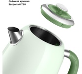 Мощность: 2200. Максимальный объем: 1.7. Нагревательный элемент: скрытый. Цвет: зеленый. Вес товара: 1.06. Габариты упаковки (ед) ДхШхВ: 0.215x0.185x0.26. Вес упаковки (ед): 1.06. Страна производства: Китай. Длина шнура: 0.99. Тип управления: сенсорное. Гарантия: 24 мес.. Материал корпуса: нержавеющая сталь/пластик. Размер (ВхШхГ): 265х160х220 мм. Температурные режимы: 5 шт (40,70,80,90,100). Конструктивные особенности: двойные стенки, дисплей, кнопка открытия крышки, отсек для шнура, подставка 360, фильтр от накипи. Безопасность: автоотключение, защита от перегрева. Функции: поддержание температуры, регулировка температуры нагрева. Индикация: включения. Мощность: 2200 Вт. Материал корпуса: нержавеющая сталь/пластик. Функции: поддержание температуры, регулировка температуры нагрева. Нагревательный элемент: скрытый. Объем: 1.7 л