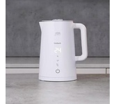 Высокая мощность 2200 Вт Объем 1.7 л Двойные стенки для безопасного прикосновения и сохранения температуры воды Сенсорная панель управления Функция поддержания температуры воды до 12 часов Управление с телефона через WI-FI (Вайфай) Регулировка температурного режима с шагом в 1° Съемная крышка для легкости ухода за поверхностью чайника Длина шнура 67 см Возможность соблюдения рекомендованных температур для любого сорта чая Работает с голосовым помощником Алиса Удобная работа через приложение умного дома HOME INTELLECT (Хоум Интеллек) Удаленное управление с телефона, использование голосовых команд для включения-выключения и управления температурой, работа по расписанию Сохранение вкуса и состава воды без повторных кипячений Низкие температурные режимы для детского питания Защитное пластиковое покрытие стальной колбы для безопасного прикосновения