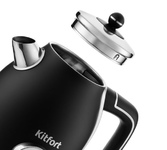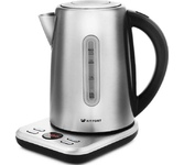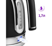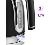 Мощность 2200 Вт. Максимальный объем 1.7 л. Нагревательный элемент скрытый. Индикатор уровня воды есть. Фильтр от накипи есть. Автоматическое отключение есть. Регулировка температуры нагрева есть. Температурные режимы 5 шт. Дисплей есть. Кнопка открытия крышки есть. Подставка 360 градусов да. Защита от включения без воды есть. Поддержание температуры воды есть. Материал корпуса металл и пластик. Цвет черный.