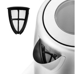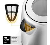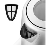 Электрический чайник MAUNFELD MFK-647WH сочетает в себе белое матовое покрытие и элементы глянцевого декора с хромированными вставками. Для производства корпуса использованы нержавеющая сталь, термостойкое стекло и специальный пластик. Металл гарантирует долговечность и надежность использования, а пластик — практичность. Устройство устойчиво к износу, различным механическим повреждениям и ударам. Прибор порадует не только надежностью и эстетичным дизайном, но и функционалом, обеспечивающим безопасность эксплуатации. Автоматическая система отключения сработает, если вода закипела или пользователь поднял аппарат с подставки до завершения процесса. Также исключена активация, если в сосуде отсутствует жидкость. Большая ручка не накаляется, что минимизирует риск получения ожога при соприкосновении с ней. Чайник может поворачиваться на 360 градусов в любую сторону вокруг своей оси. Скрытый нагревательный элемент ограничен от прямого контакта с водой, за счет чего на спирали не будет образовыватьс