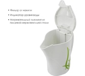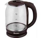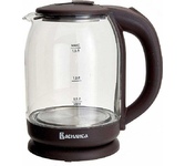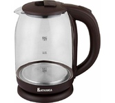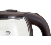 Объем 1,8 л. Номинальная потребляемая мощность 1500 Вт. Корпус из высококачественного термостойкого стекла. Закрытый нагревательный элемент из нержавеющей стали. Вращение корпуса на 360°. Цвет: коричневый. Шкала уровня воды. Внутренняя LED-подсветка. Отсек для хранения электрошнура. Автоматическое отключение при закипании. Блокировка включения без воды.