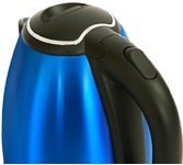 Максимальный объем, л. 1,8. Подставка с вращением на 360 есть. Хранение сетевого шнура в подставке есть. Отключение при закипании есть. Отключение при отсутствии воды есть. Индикатор включения есть. Комплектация чайник, гарантийный талон, инструкция на русском языке. Материал корпуса нержавеющая сталь. Цвет синий. Потребляемая мощность, Вт. 1500. Электропитание, В., Гц. 220-240, 50.