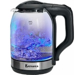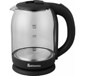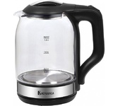 Объем 1,8 л. Номинальная потребляемая мощность 1500 Вт. Корпус из высококачественного термостойкого стекла. Закрытый нагревательный элемент из нержавеющей стали. Вращение корпуса на 360°. Цвет: черный. Шкала уровня воды. Внутренняя LED-подсветка. Отсек для хранения шнура питания. Автоматическое отключение при закипании. Блокировка включения без воды.