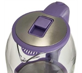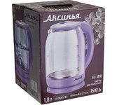 Параметры Объем 1,8 л Номинальная потребляемая мощность 1500 Вт Описание Чайник электрический предназначен для нагрева воды в бытовых и аналогичных условиях Корпус из высококачественного термостойкого стекла Вращение корпуса на 360° Закрытый нагревательный элемент из нержавеющей стали Шкала уровня воды Внутренняя LED-подсветка Отсек для хранения шнура питания Автоматическое отключение при закипании Блокировка включения без воды Цвет: сиреневый Упаковка: цветная коробка