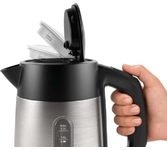 Мощность: 2200. Максимальный объем: 1.7. Нагревательный элемент: скрытый. Цвет: нержавеющая сталь. Вес товара: 1.1. Габариты упаковки (ед) ДхШхВ: 0.23x0.17x0.25. Вес упаковки (ед): 1.5. Страна производства: Китай. Гарантия: 12 мес.. Материал корпуса: металл/пластик. Индикация: включения, уровня воды. Безопасность: автоотключение, защита от включения без воды, защита от перегрева. Конструктивные особенности: кнопка открытия крышки, подставка 360, фильтр от накипи. Нагревательный элемент: скрытый. Материал корпуса: металл/пластик. Объем: 1.7 л. Мощность: 2200 Вт