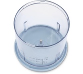 1 скорость работы. Объем пластиковой чаши 0,5 л. Двойной нож из нержавеющей стали . Насадка для взбивания. Подходит для измельчения, взбивания, смешивания. Мощность 300Вт.