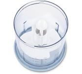 Мощность 350 Вт Емкость 0,8 л. Корпус – пластик +металл Чаша – пластик 1 скорость Двойной нож из нержавеющей стали Импульсный режим Насадка для чистки чеснока Прорезиненные ножки Количество вставок/дисков 2
