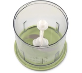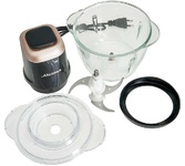 Измельчитель, Мощность 800 Вт, Потребляемая мощность: 250 Вт, Объем чаши: 2 литра, Стеклянная чаша ( Возможность мытья чаши в посудомоечной машине), Противоскользящая подставка, Двойной ножевой блок: 4 ножа из нержавеющей стали со специальной заточкой лезвий, Защитные крышки ножей для безопасного хранения, 2 скорости работы, Автоматическая блокировка при неправильной установке, Защита от перегрева, Цвет: бежевый.