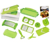 Овощерезка Найсер Дайсер Плюс Комплектация: Режущий элемент со встроенной решеткой Режущий нижний элемент Прозрачная приемная емкость (объем 1.500 мл) Крышка на приемную емкость Режущий вкладыш (6х6 мм или 12х12 мм) Режущий вкладыш (18х18 мм или 6х36 мм) Режущий вкладыш на 4 и/или 8 частей Съемная насадка для нарезки на 8 частей Защитная накладка на все режущие вкладыши Овощечистка