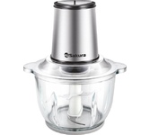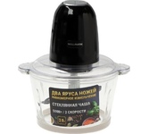 Чоппер-измельчитель Мощность: 1200Вт Стеклянная чаша объемом: 1,8л Материал корпуса: пластик и нержавеющая сталь Двухъярусный нож с 4-мя лезвиями Ножи из нержавеющей стали 2 скоростных режима Противоскользящее основание Механическое управление Сеть: 220-240В, 50Гц
