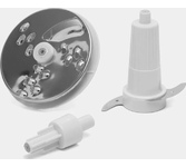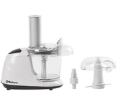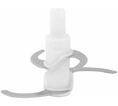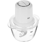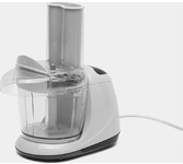 Чоппер с 2 доп. насадками. 400 Вт, 0,35 л, пластиковая чаша, 2 лезвия из нержавеющей стали, насадка для взбивания яиц и насадка для нарезки овощей, одна скорость, цвет белый.