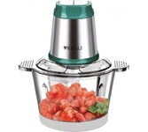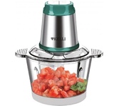 Чоппер-измельчитель 5в1 Мощность: 1500Вт Металлическая чаша: 2,8л 3 скоростных режима Двухъярусный нож с 4-мя лезвиями Насадки: диск-терка двусторонняя, насадка для взбивания яиц, насадка для замешивания теста, насадка для очистки чеснока Противоскользящее основание Ножи из нержавеющей стали Механическое основание Сеть: 220-240В, 50Гц