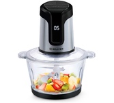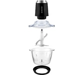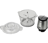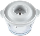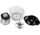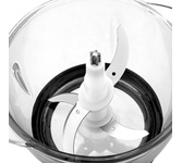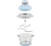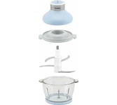 Чоппер-измельчитель 5в1 Мощность: 1500Вт Стеклянная чаша: 2,8л 3 скоростных режима Двухъярусный нож с 4-мя лезвиями Насадки: диск-терка двусторонняя, насадка для взбивания яиц, насадка для замешивания теста, насадка для очистки чеснока Противоскользящее основание Ножи из нержавеющей стали Механическое основание Сеть: 220-240В, 50Гц