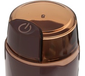 Номинальная потребляемая мощность 250 Вт, Объем 60 г, Пригодна для перемалывания кофе и специй, Нож со специальной заточкой лезвий из нержавеющей стали обеспечивает идеальный помол кофе, Режим работы: 30 секунд работы / 1 минута перерыв, Блокировка включения при снятой крышке, Цвет: коричневый.