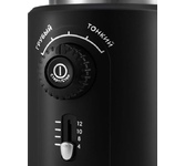 Жерновая электрическая кофемолка, Съемные конические жернова из углеродистой стали диаметром 40 мм, Мощность 200 Вт, Равномерный качественный помол, Точная настройка степени помола: 38 настроек, Скорость вращения жерновов 500 об/мин, Емкость съемного контейнера для зерен 150 г, Емкость съемного контейнера для молотого кофе 150 г, Противоскользящие резиновые ножки, Чистящая щеточка в комплекте