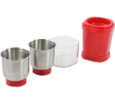 Мощность кофемолки 200 Вт Мощность капучинатора 20 Вт Емкость кофемолки 100 грамм Емкость капучинатора 140 мл Ножи из нержавеющей стали 2 чаши из нержавеющей стали Таймер (45 сек для кофемолки, 60 сек для капучинатора) Включение/выключение нажатием на кнопку