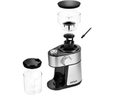 Система помола жернова. Мощность 200 Вт. Вместимость 100 г. Регулировка степени помола есть. Возможность помола специй есть. Съемный резервуар для кофе есть. Автоматическая система отключения есть. Длина сетевого кабеля 0.98 м. Материал корпуса пластик. Цвет нержавеющая сталь.