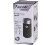 Модель рассчитана на загрузку 50 граммов зерен и оснащена высококачественными ножами из нержавеющей стали. Безопасность работы прибора обеспечивает функция блокировки при снятой крышке. Мощность кофемолки составляет 200 ватт. Имеет импульсный режим работы.