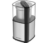 Кофемолка- измельчитель.Корпус из нержавеющей стали. Мощность 300 Вт. Вместимость 80г . Импульсный режим работы. Нож из нержавеющей стали. Автоматическая блокировка. Прозрачная крышка
