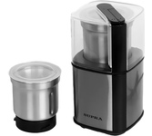 Кофемолка- измельчитель с дополнительной чашей.Корпус из нержавеющей стали. Мощность 300 Вт. Вместимость 80г . Импульсный режим работы. Нож из нержавеющей стали. Автоматическая блокировка. Прозрачная крышка